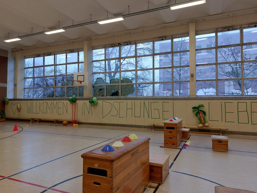 Helau und Alaaf aus dem Dschungel! In diesem Jahr stand unsere Faschingsfeier unter dem Motto „Ab in den Dschungel“ – und unsere Schule verwandelte sich für einen Tag in eine bunte, wilde Abenteuerlandschaft. Überall hingen Lianen, grüne Blätter, Tiere und liebevoll gestaltete Dekorationen. Mit viel Kreativität wurde gebastelt, geschmückt und vorbereitet – das Ergebnis konnte sich wirklich sehen lassen!