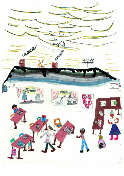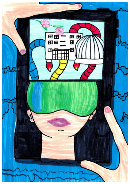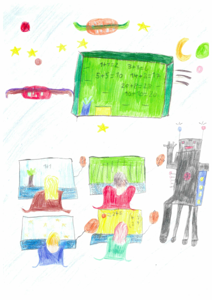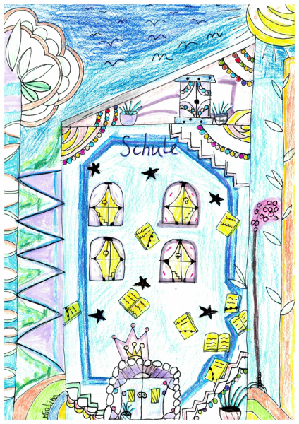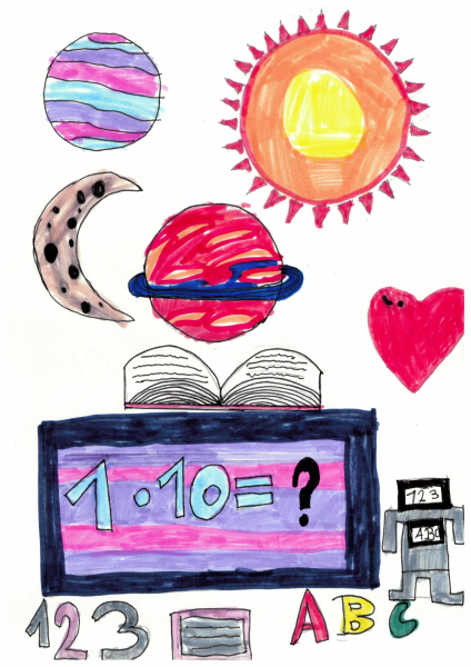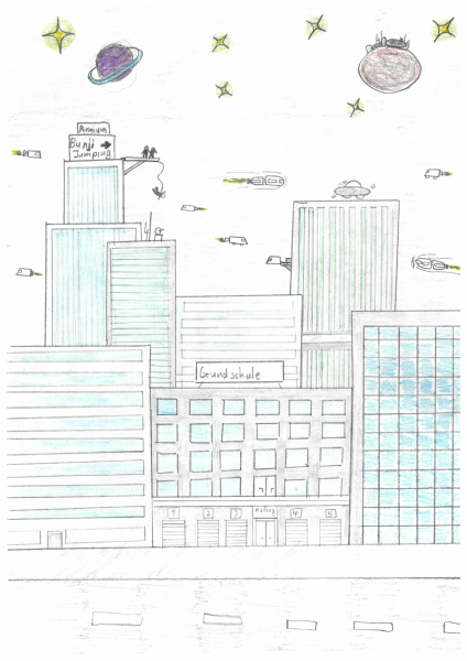 Im vergangen Januar wurden alle Schüler:innen unter dem Motto „Leben und Lernen in der Zukunft“ aufgerufen, kreative Bilder zu malen und anschließend einzureichen. Im Februar gab es dann die Abstimmung. Nach Auszählung aller Stimmen haben wir nun endlich ein Gewinnerbild.