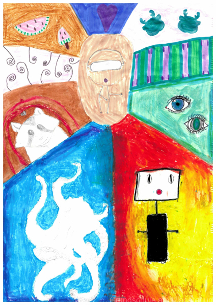 Wir gratulieren Nikolaos aus der 5b. Dein Bild erhielt insgesamt 162 Stimmen. Herzlichen Glückwunsch! Dein Entwurf wird im kommenden Schuljahr das Deckblatt unseres Hausaufgabenheftes sein.