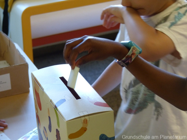 Das Wahllokal befand sich im Foyer unserer Schule und je nach Klassenstufe wurden die Klassen einzeln in das Foyer gebeten. Nachdem die Kinder aus dem Planungsteam die zur Wahl stehenden Vorschläge vorgestellt hatten bekamen alle Schüler:innen einen Wahlzettel auf dem die entsprechende Wunschnummer eingetragen werden sollte.